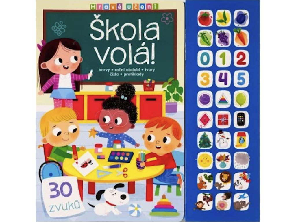 Těšíte se do školy? S touto veselou zvukovou knížkou to bude hračka! Děti se zábavnou formou naučí rozeznávat barvy, tvary, čísla, roční období a protiklady. Každá stránka je plná překvapení, úkolů a zvuků, které učí hrou a zapojují více smyslů - sluch, zrak i hmat. Hledejte věci v obrázku a stiskněte správné tlačítko. Děti si tak snadno osvojí důležité dovednosti, které se jim budou hodit nejen ve škole. Kniha rozvíjí poznávací schopnosti, paměť, logické myšlení i základy čtení.